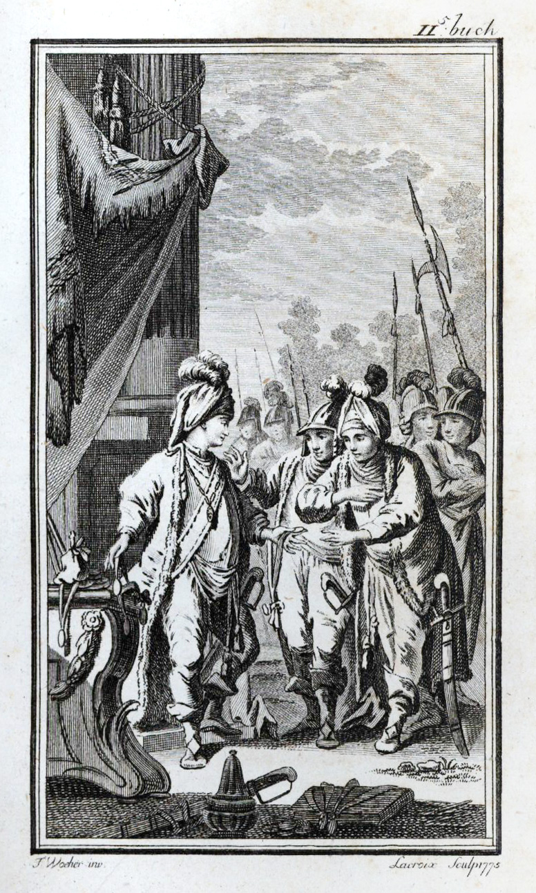 Gravure sur cuivre par J. Lacroix, 1775, d’après un dessin de T. Wocher. |
